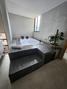 l protagonista: jacuzzi interior elevado con vista parcial a la ciudad, ideal para relajarte tras recorrer el Parque Principal (a solo 5 minutos caminando).