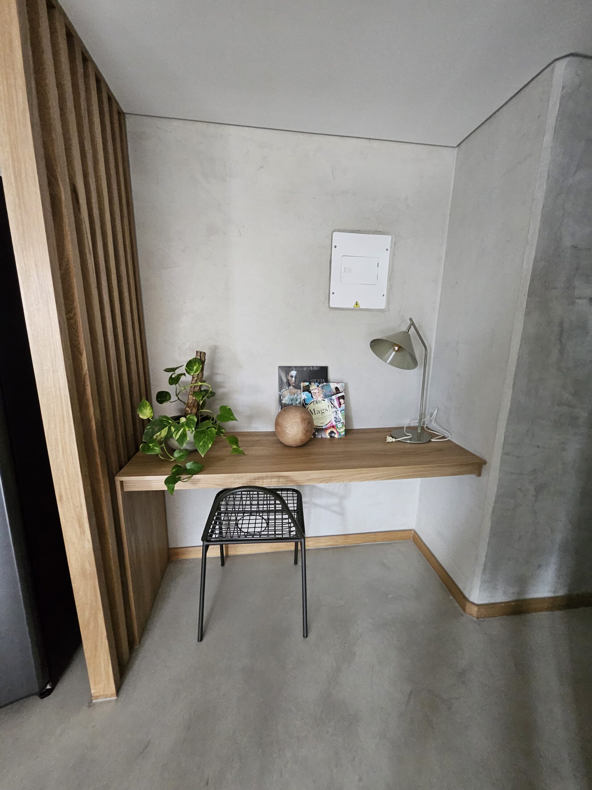 - Zona de trabajo, ventilación natural y persianas black‑out